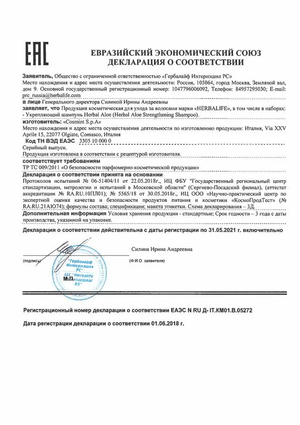 Нанесите шампунь на влажные волосы, вспеньте массирующими движениями, тщательно смойте. Для лучшего результата используйте вместе с Укрепляющим кондиционером Herbal Aloe.